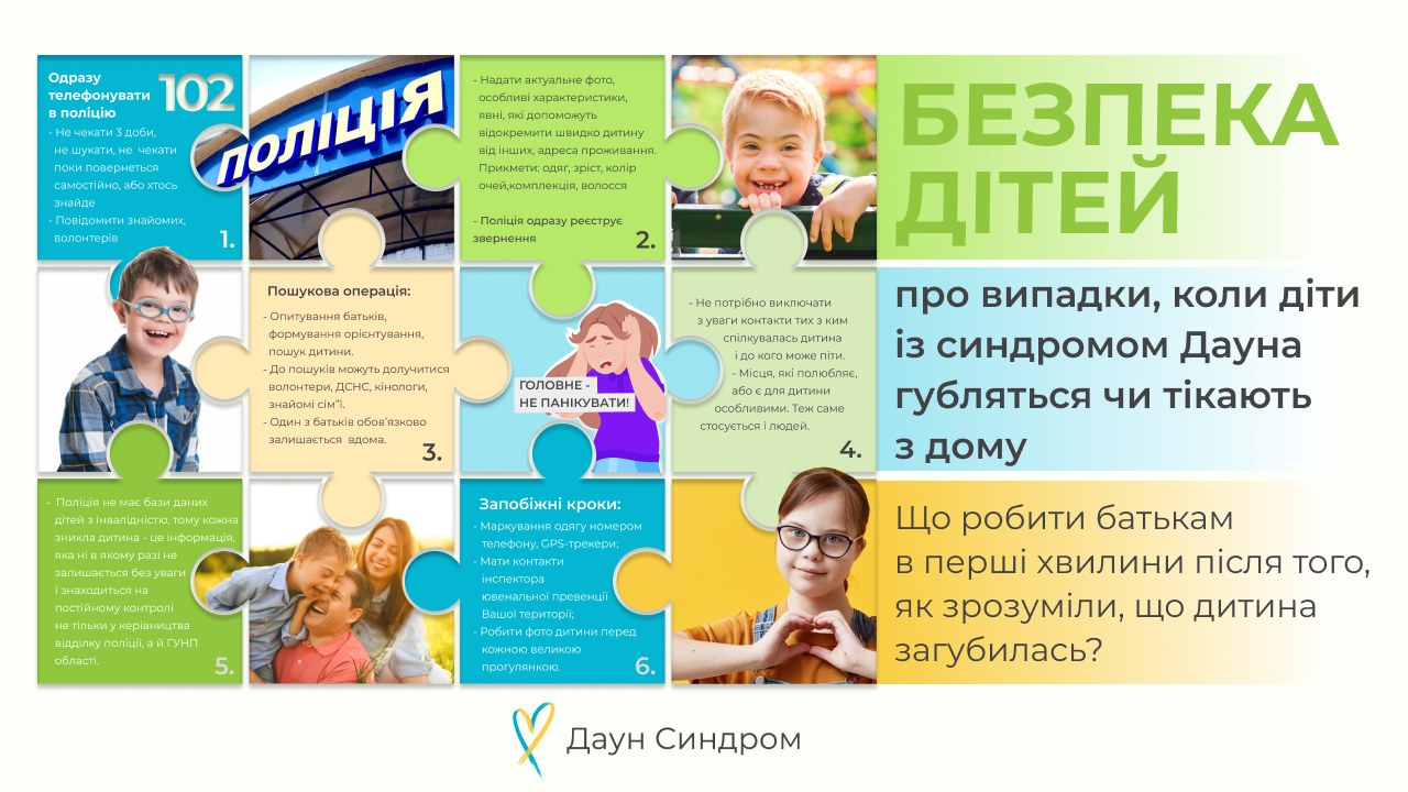 В перші хвилини, коли батьки зрозуміли, що дитина зникла, необхідно зробити повідомлення до поліції, просити допомоги у знайомих і волонтерів. У випадку зникнення дитини, а тим паче з інвалідністю, необхідно звертатись до поліції одразу. Періоду очікування не має. Як тільки прийшло розуміння, що дитина зникла, необхідно одразу телефонувати до поліції